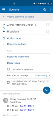 • wide range of parameters for advanced search (eg choice of means of transport, the minimum time for transfer, low-floor connections, connections for passengers with bicycles, etc.),